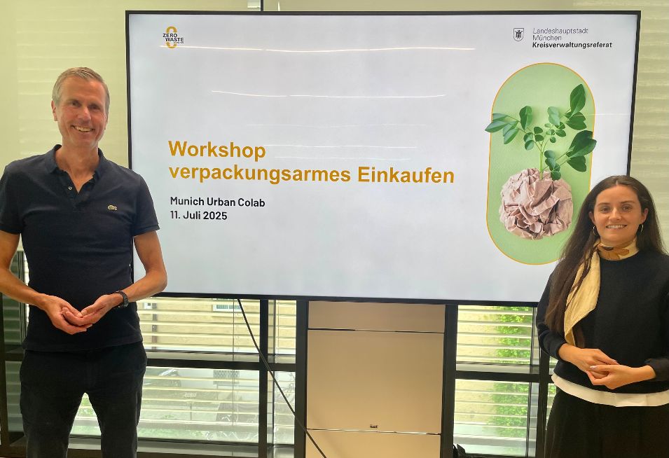 Am 11. Juli 2025 fand im Munich Urban Colab der 2. Workshop der Landeshauptstadt München zum Thema „Verpackungsarmes Einkaufen“ statt. Unternehmen und Start-ups aus den Bereichen Food & Beverages und Handel diskutierten, wie eine Kreislaufwirtschaft ganz konkret am Beispiel des Mehrwegsystems gelingen kann. Städte und Gemeinden spielen bei der Umsetzung der