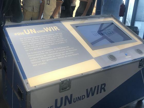 Die Ausstellung der DGVN informiert die interessierte Öffentlichkeit über die wichtigsten Arbeitsfelder der Vereinten Nationen Friedenssicherung, Menschenrechte, Umwelt und Entwicklung. Mit multimedialen und interaktiven Elementen erklärt die Ausstellung die Arbeitsweise und den Aufbau der Vereinten Nationen.